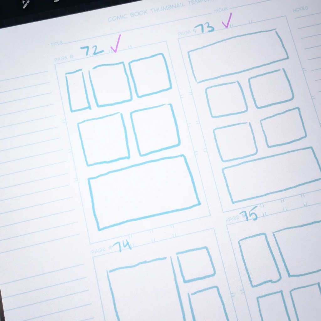 It’s still going really well. Again, I’m working on the rough (REALLY ROUGH) draft — where I set up all the pages, including the panel layouts, and very loosely sketch out the art and text for each page.