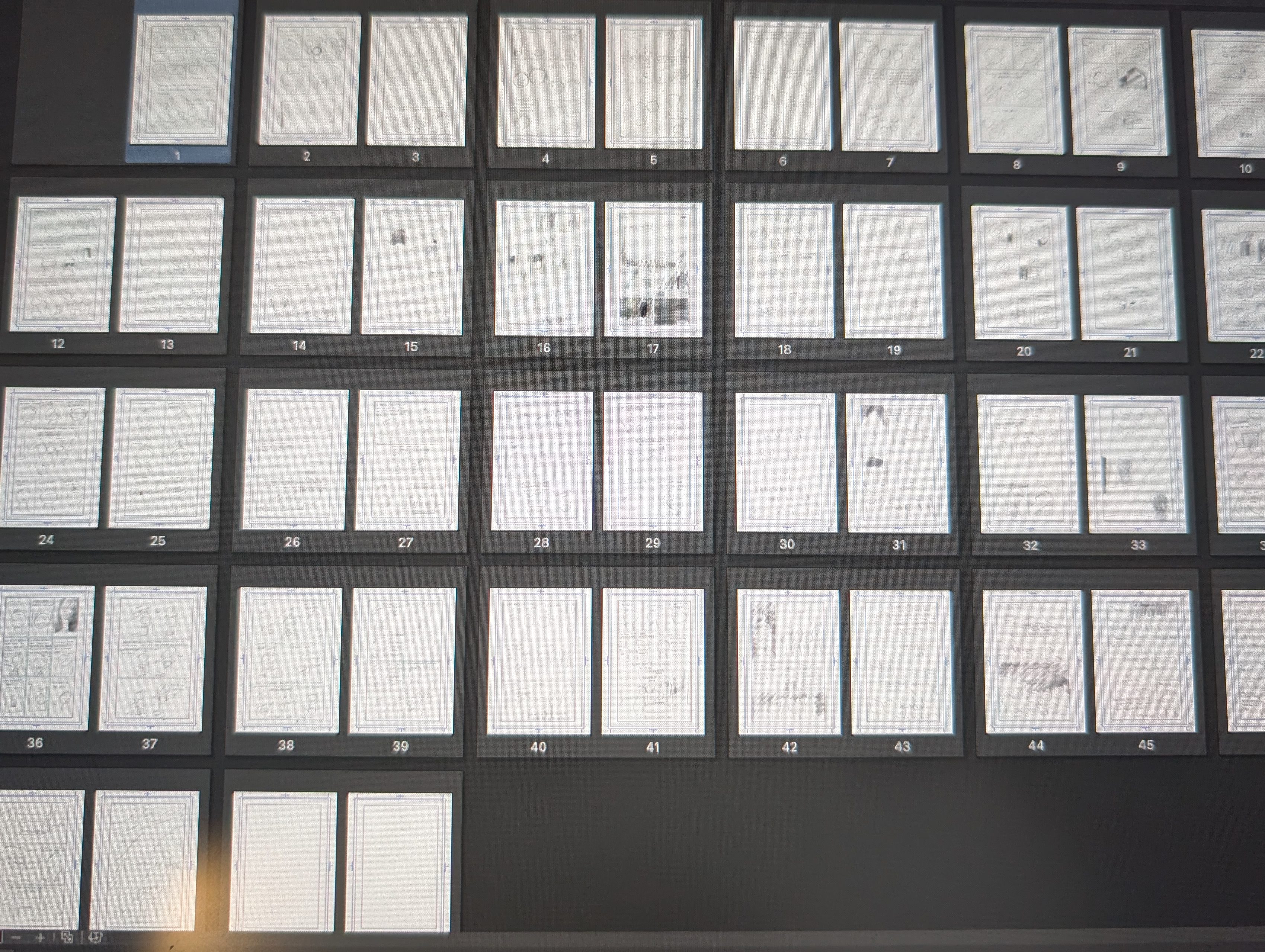 It’s still going really well. Again, I’m working on the rough (REALLY ROUGH) draft — where I set up all the pages, including the panel layouts, and very loosely sketch out the art and text for each page.