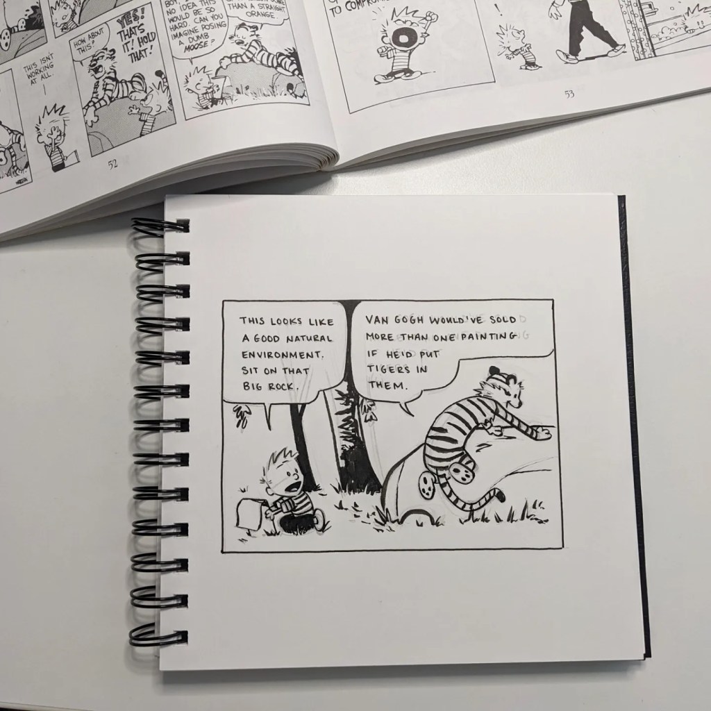Working on both might be a good balance. And then maybe, just maybe, I work on cartooning in my sketchbook and building that practice. Again. I’m sure once it starts to feel a bit more intuitive it will start feeling more fun too. Hopefully. I just have to keep putting in the work to get there.
